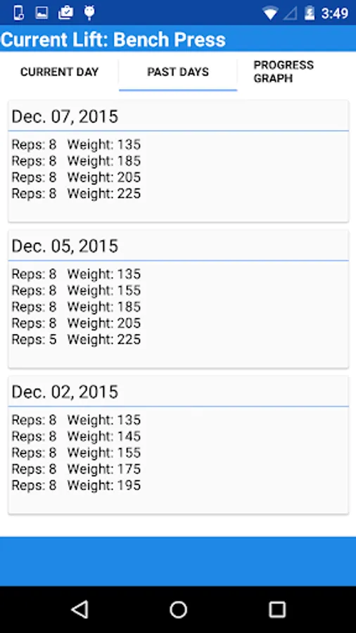 Lift log to track your lifts over time and view your progress. Track your progress based on you calculated maxes. Reps must be six or below to calculate current max. Perfect for weight lifters that already have a workout plan. Also great for those starting out and wanting to see their maxes skyrocket!