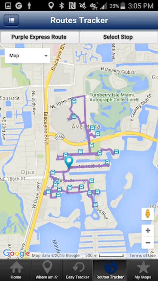 The Aventura Express mobile app offers the advantage of an entirely new and redesigned tracking platform provided by TSO Mobile, taking the shuttle bus system to the next level.