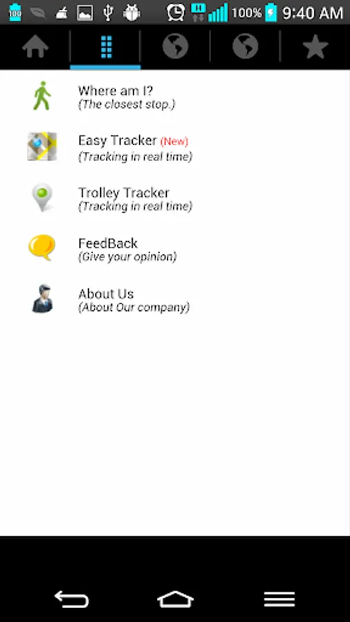 Note: If a Stop or Route is not near your location the system will guide you by giving you Walking Directions on how to reach your nearest Stop or Route. (you will see the Line to Follow on the Maps)
