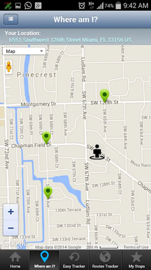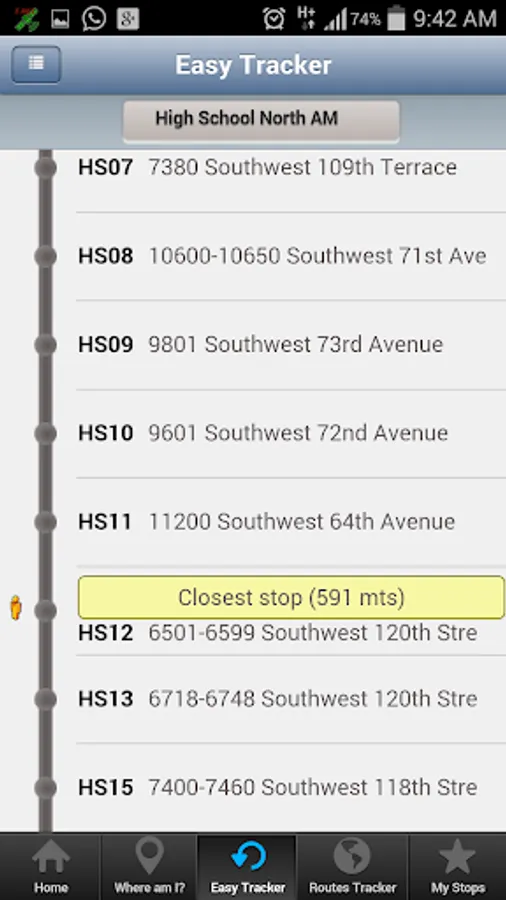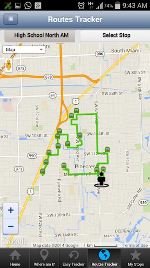 Note: If a Stop or Route is not near your location the system will guide you by giving you Walking Directions on how to reach your nearest Stop or Route. (you will see the Line to Follow on the Maps)
