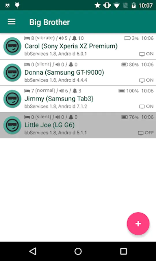 You probably have experienced this many times. Your kids' smartphones or tablets start beeping and zooming for notifications, because your kids forgot to put their devices to silent mode! Use the 'Big Brother' app to immediately see which device it is and put it to silent mode remotely.