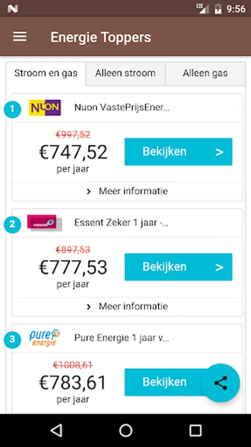 With this app you can view hundreds of energy contracts (gas and electricity), including many attractive deals.