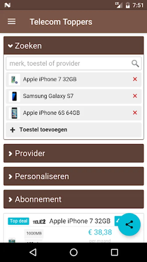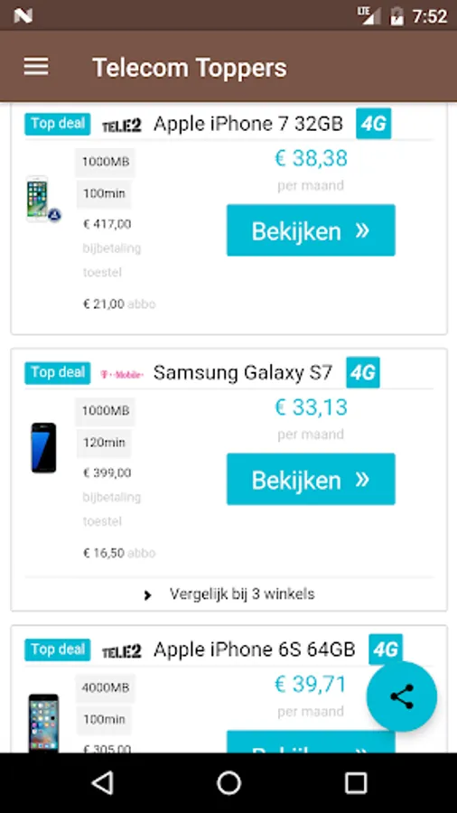With this app you can view hundreds of telecom deals (mobile phones and subscriptions), including many attractive deals.