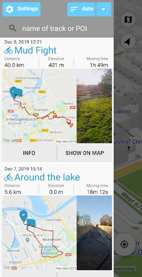 Navigate to POIs and navigate along tracks. You get clear visual and audible instructions.