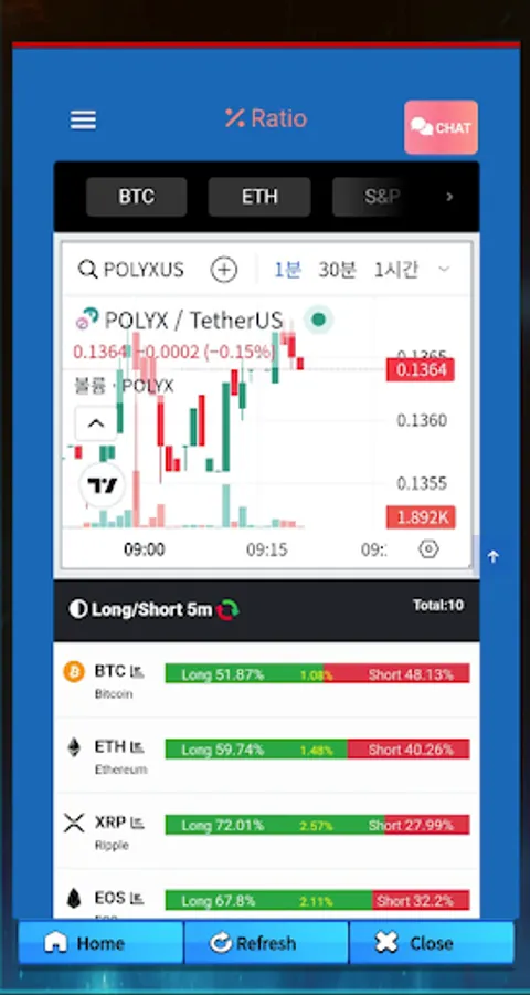 Technical indicators, Long/Short ratio, USD/KRW charts: The app offers information on technical indicators, Long/Short ratios, and USD/KRW charts. Users can utilize these tools to perform technical analysis of the cryptocurrency market and track exchange rate fluctuations.
