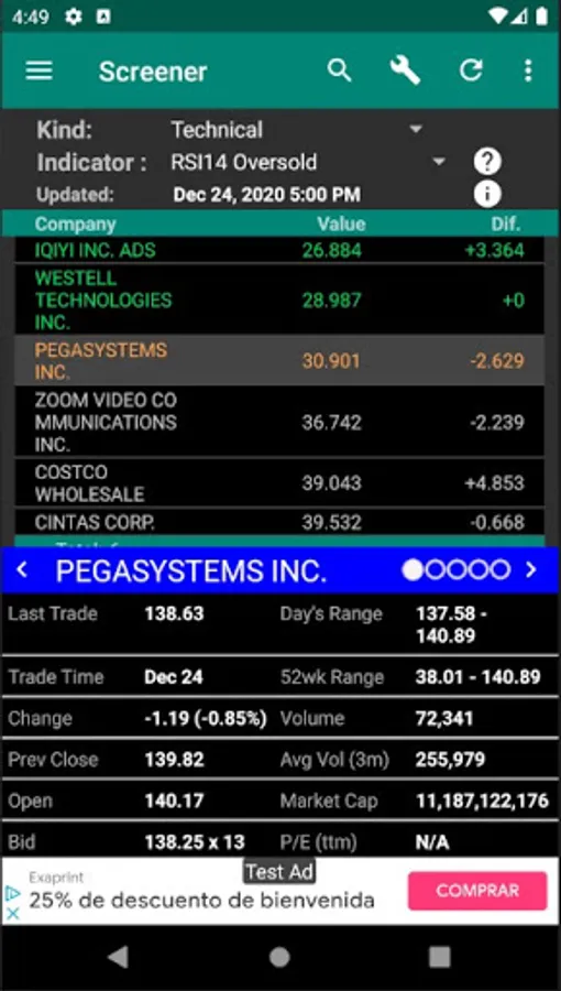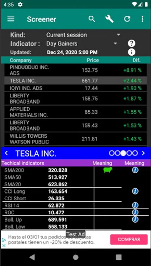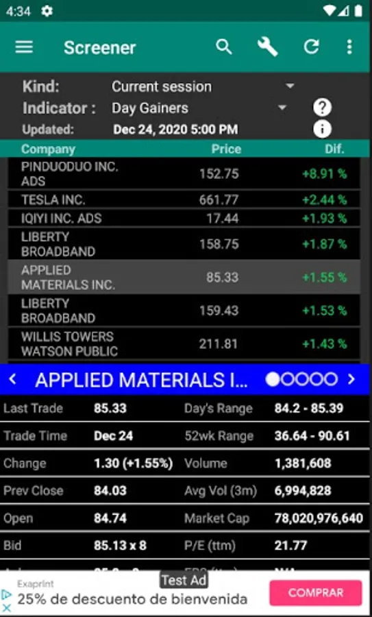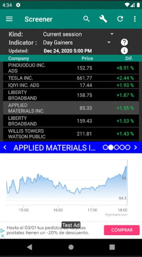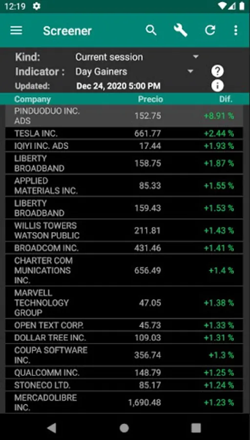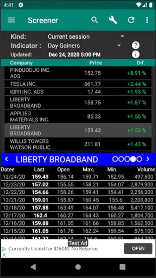 The information is delayed depending on the market.