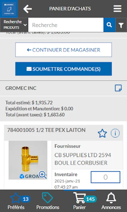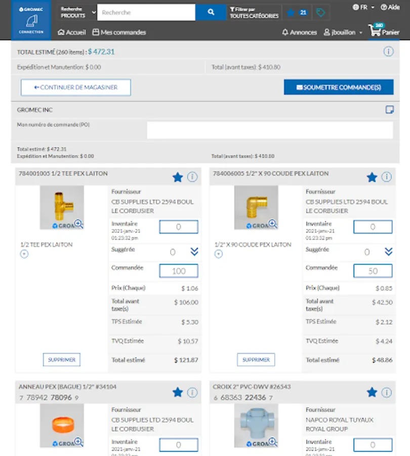 Plumbing professional: order on GROMEC CONNECTION from your mobile phone or from an easy-to-use web interface. It's now easier than ever to manage your inventory and purchase orders! No need to wait for your representative, no fax or email to send, no calls to make. Click and order! "