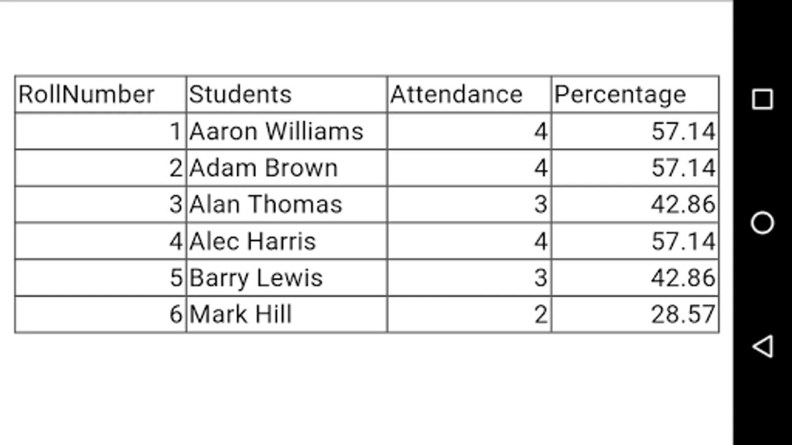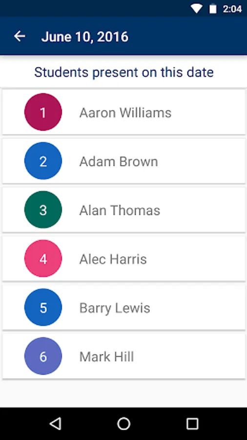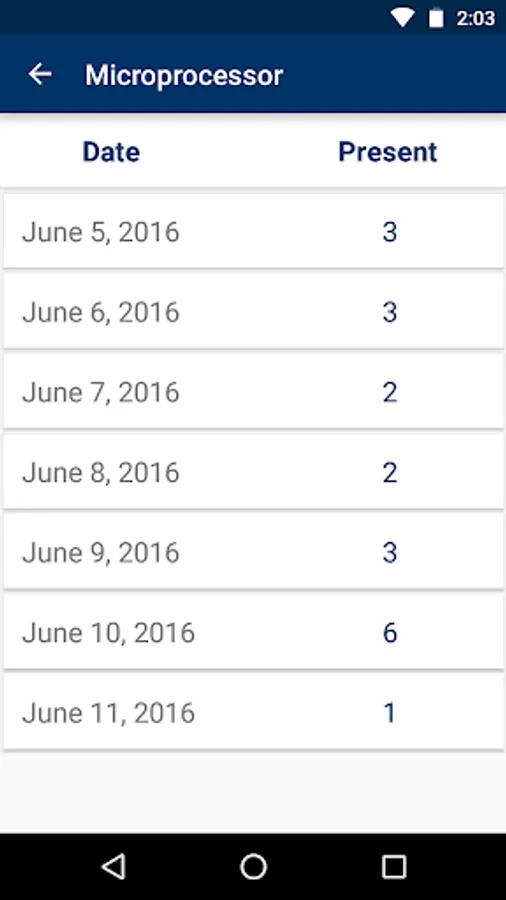 Easily export your attendance of a particular subject to .CSV file so that you can open it with any spreadsheet application. This file will be saved in Internal Storage.