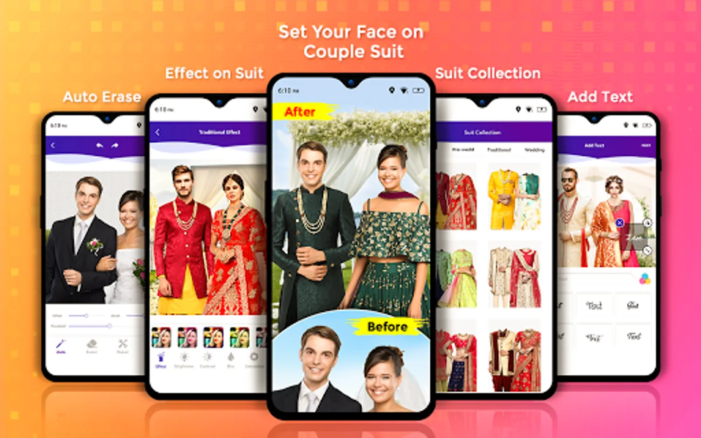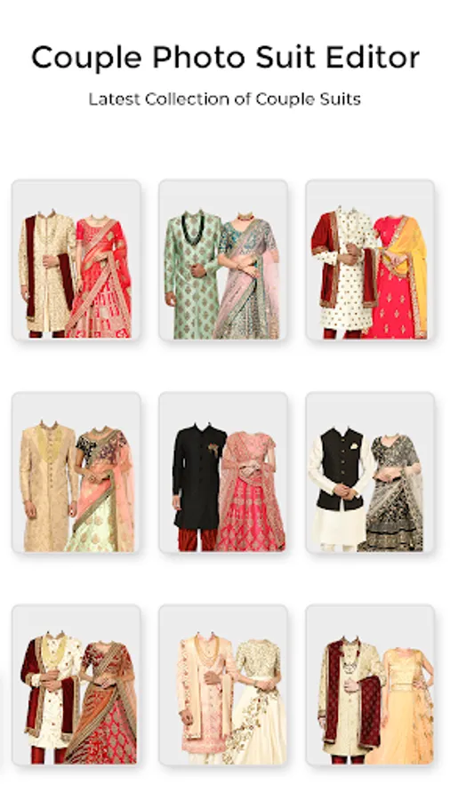 * Traditional Couple Photo Suit App is just an excellent App which lets you try on latest suits along with the different background. This App Create new Modern Photo Picture with own
