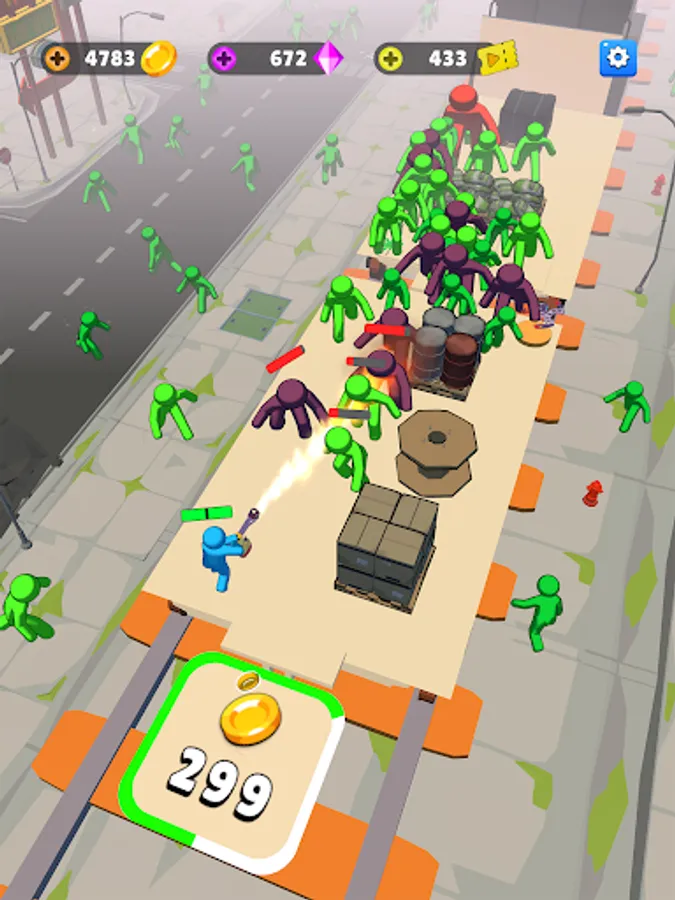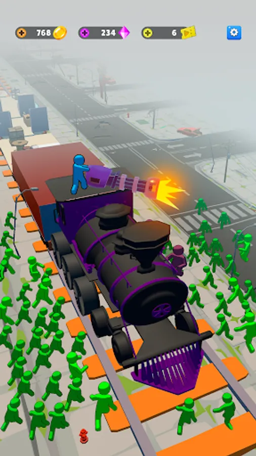 Train Defense is a new action game where you confront hordes of zombies. Shoot zombies, collect resources, fortify the train and upgrade your weapons!