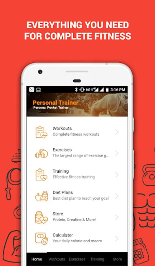 Personal Trainer App gives you access to fitness training, workouts, exercises, and diet plans to help you stay fit and healthy. It has daily workout routines for all your main muscle groups. The app has the workout for abs, chest, triceps, glutes, shoulders, quads, neck, biceps, laps and hamstrings.
