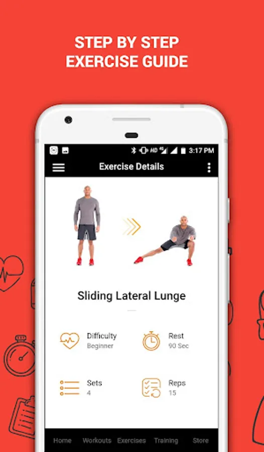Every exercise has a detailed guide with illustrative images. Step by Step instructions are given for every exercise. This workout app has Workouts designed for everyone - beginner level to advanced level.