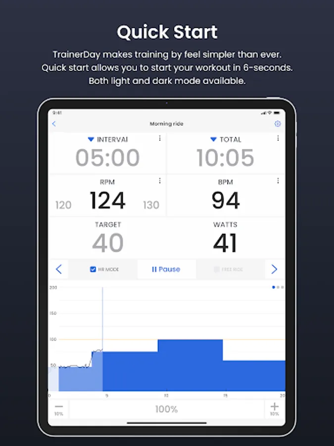 1) Start your training session in 5-10 seconds (after an initial quick setup)