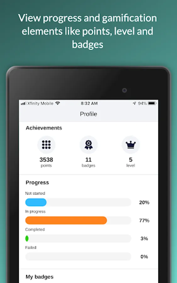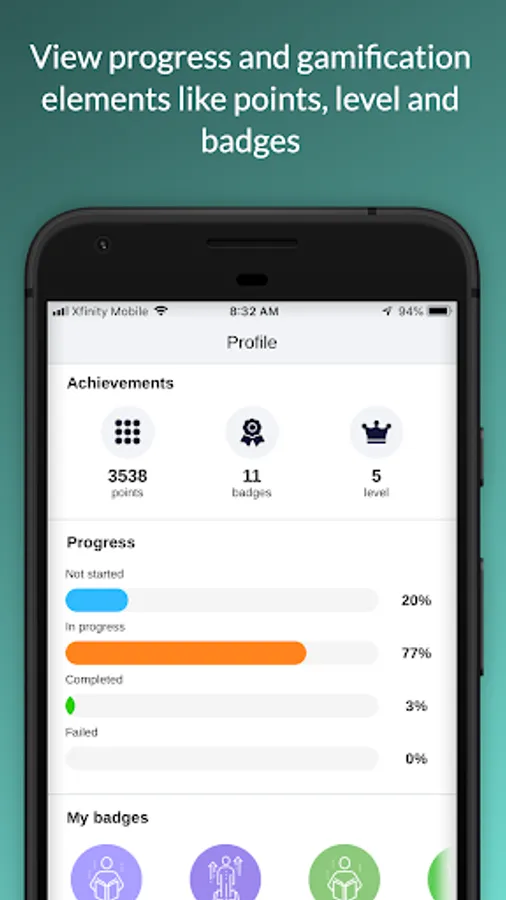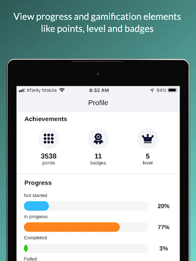 • Gamification: Students earn points, badges, and levels and can even see how they rank on the “leaderboard.”
