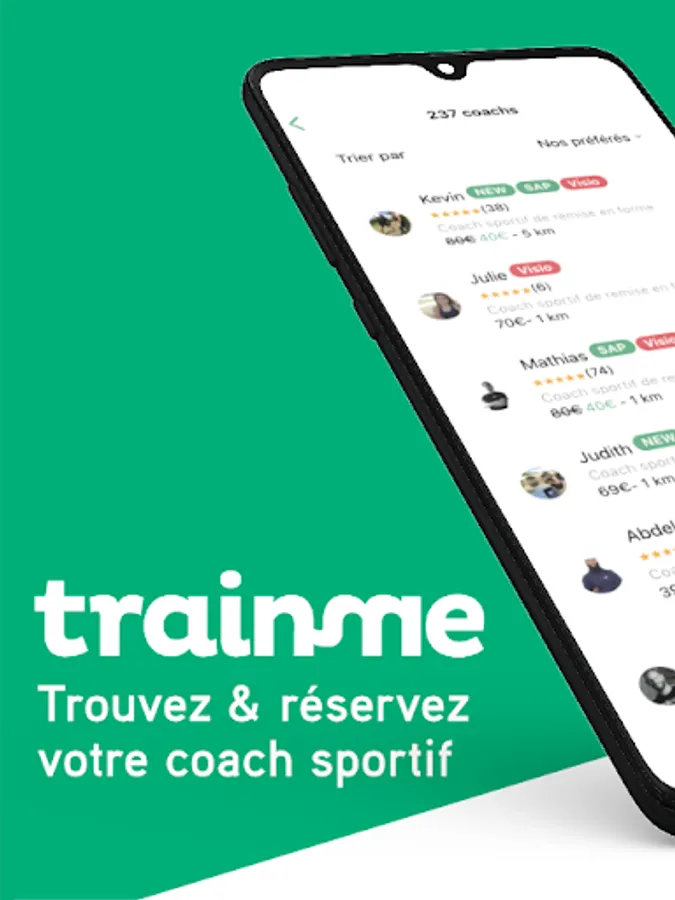 TrainMe is the first mobile and web application that connects individuals and companies with sports coaches. Despite the best will in the world, some people can not motivate themselves to practice an activity. Others are motivated but simply can not find the time for it. Regardless of the profile of the athletes, TrainMe offers an à la carte service to practice the activity of your choice, according to his availability and that everywhere (at home, the office or outside) and choose the coach who suits you .