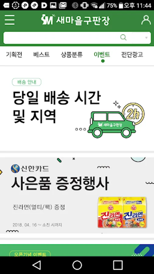 Located in Jayang Traditional Market, Gwangjin-gu, SM Saemaul-gu Market opens a mobile shopping app. Now, please feel the excitement of 2-hour delivery to all areas of Gwangjin-gu easily with your mobile device.