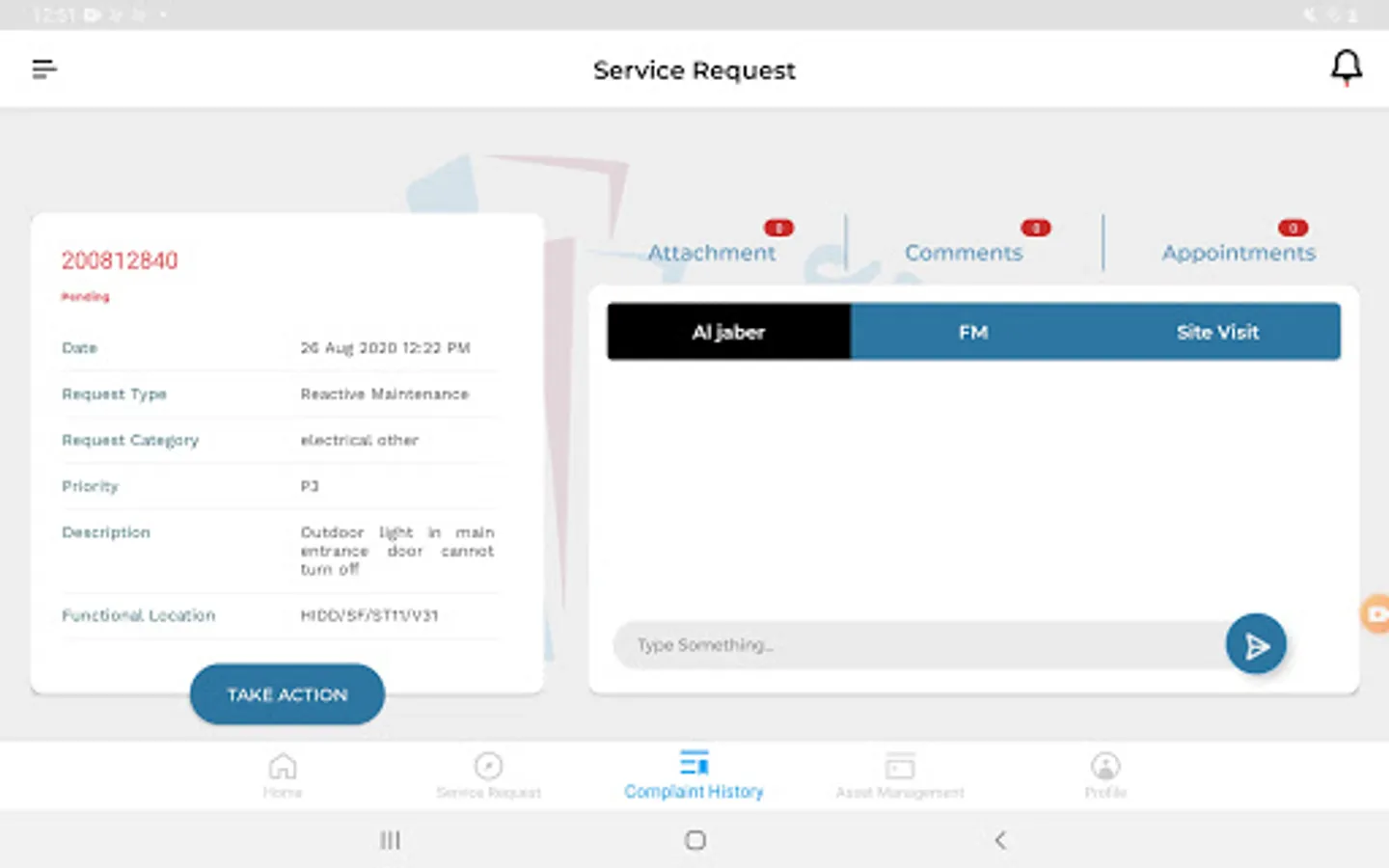 4.Complaint history lets technicians sort and filter requests based on date, location, contact details and Request category or Request type.