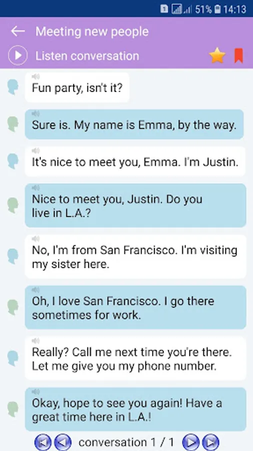 - Choose the conversation that you want to hear a native speaker pronounce each word while you read in the content tab.