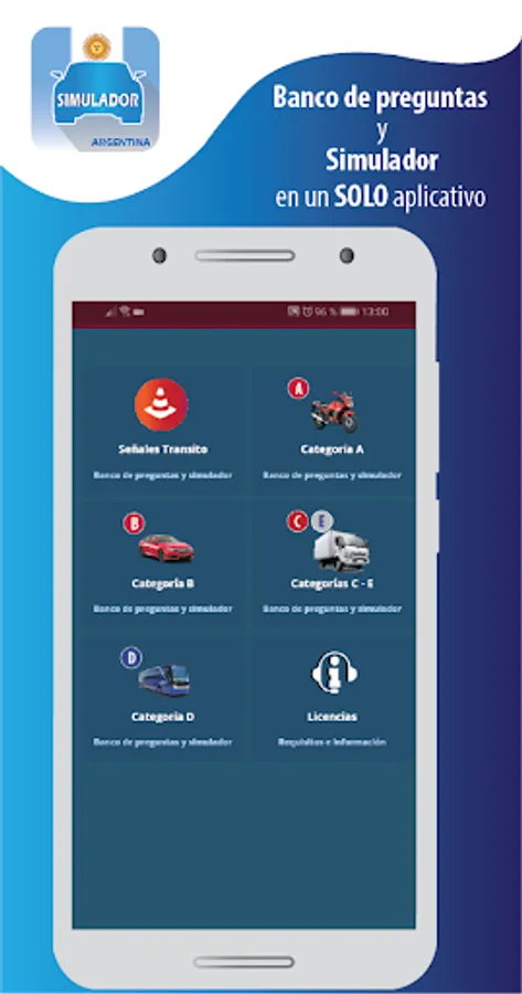 The application has a simulator for each category of the Driving Knowledge Exam for Drivers License Applicants