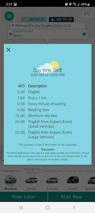 • Tariff: Taxi fare details of Abu Dhabi taxi.