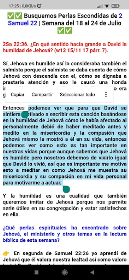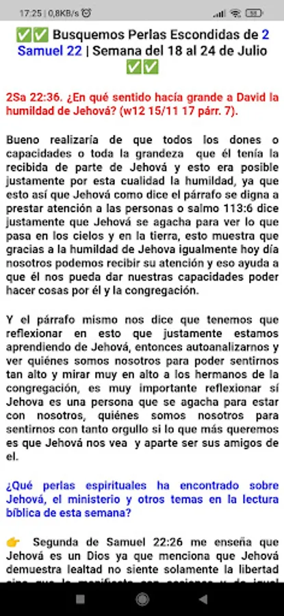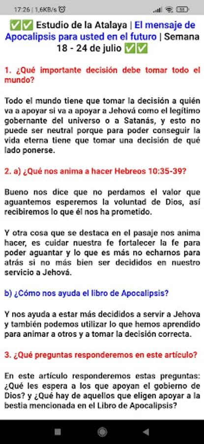 En esta aplicación podrás encontrar la transcripción de las reuniones entre semana y de fin de semana. Se transcribe las reuniones de España, México, Argentina, Chile. Se va actualizando cada semana. Es una ayuda muy útil entre hermanos, esencial para que puedas participar en las reuniones.