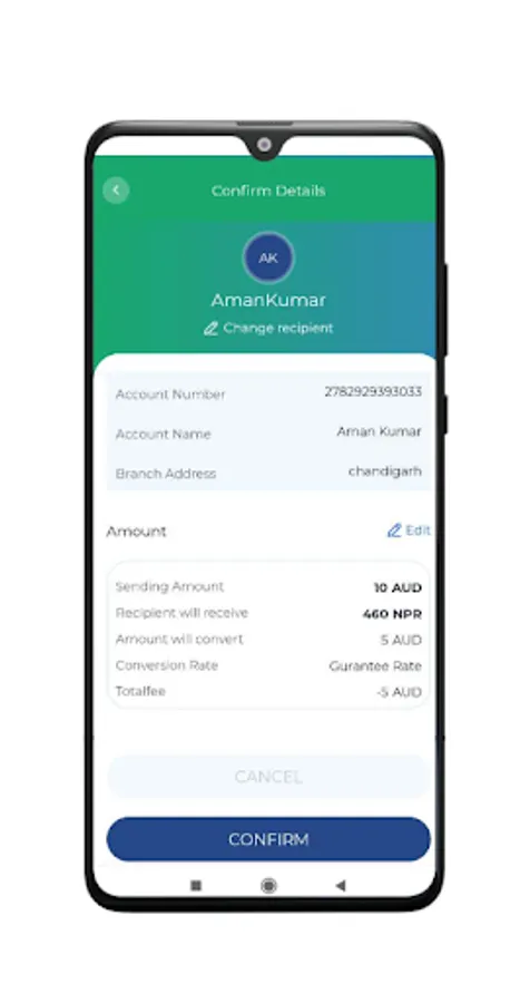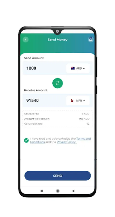 2.Enter the amount and the recipient's details. You can also check the transaction fees upfront and the estimated time it will take for the money to be delivered.