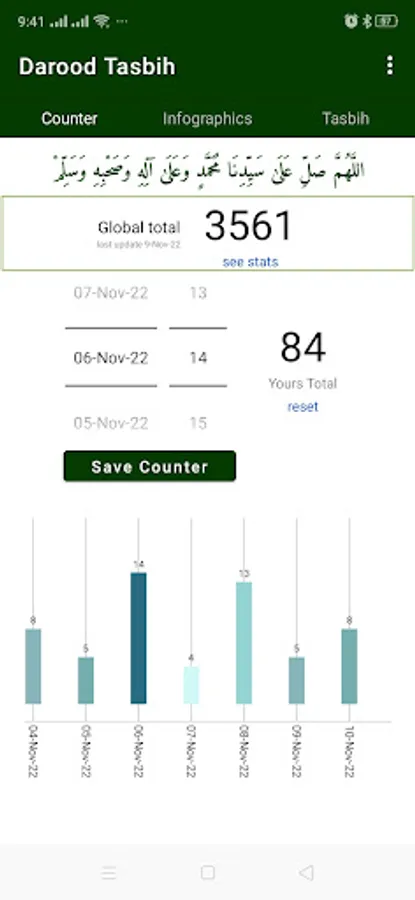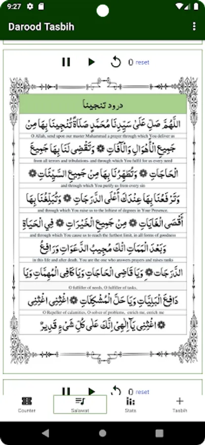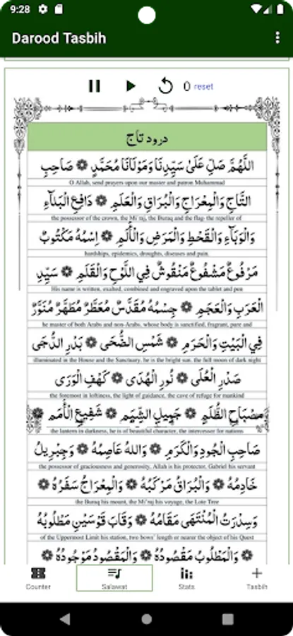 1. Darood Tasbih is a beautiful application for keeping record of your daily Darood Shareef and Salawat count. this application is helpful for the one who have mission of reciting particular number of Darood and Salawat in his life.