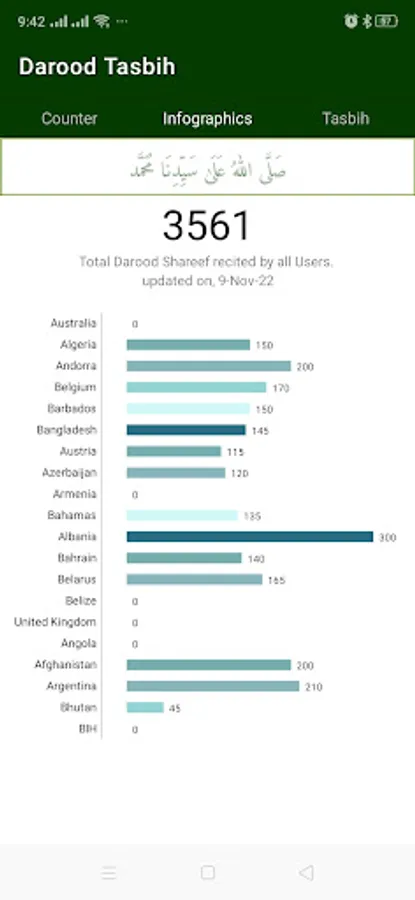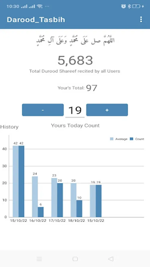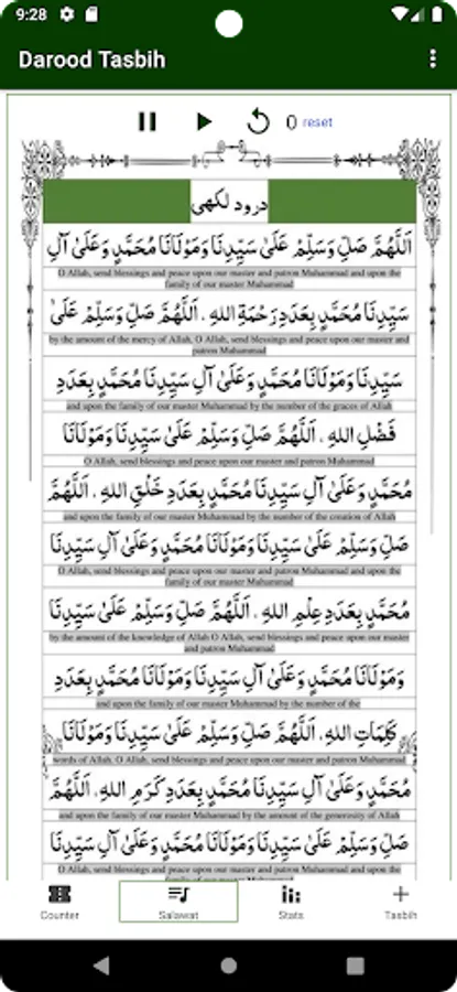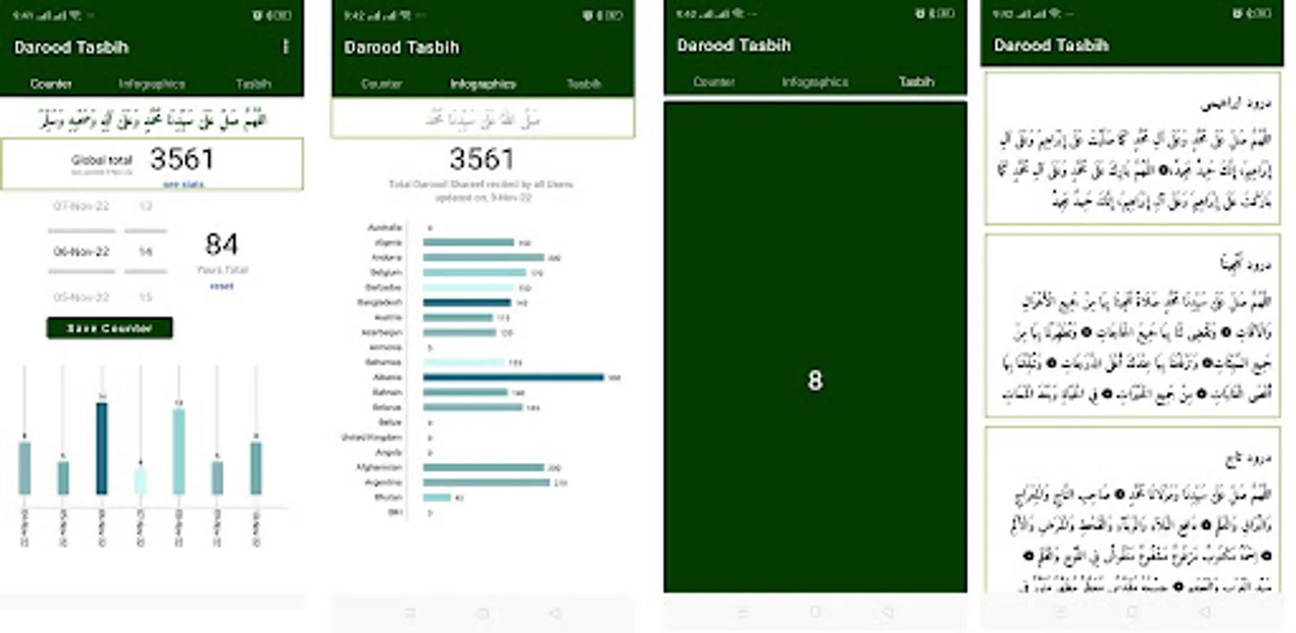 3. This application has also tasbih mood where user can count his Darood & Salawat in real time, it works as smart tasbih counter.