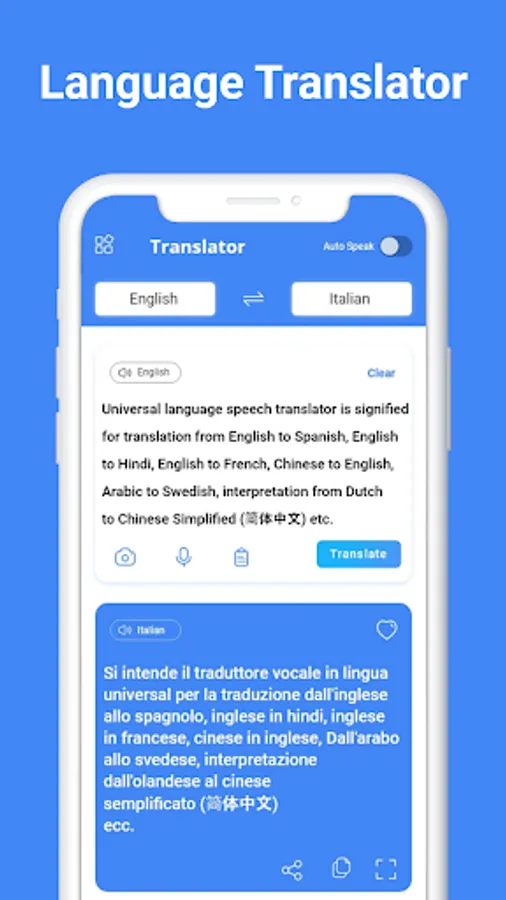 • Translate Text and written content language translation in this all language translator.
