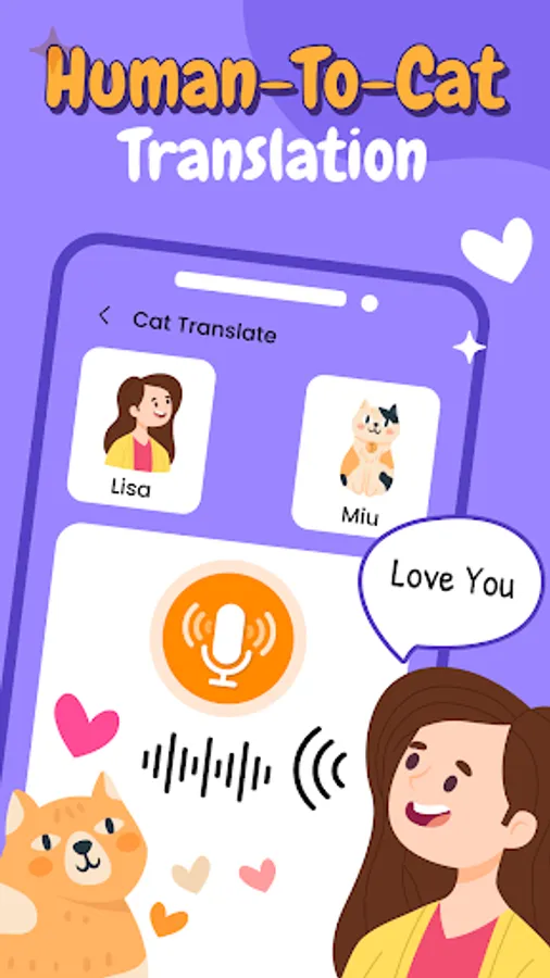 Amazingly, this cat translator will assist you in communicating with the cat you love. It uses an advanced simulated cat sound algorithm to translate from cat to human language and vice versa. Cat Translator is a joke app; do not take it seriously! It is necessary to play with your cat and have a good time.