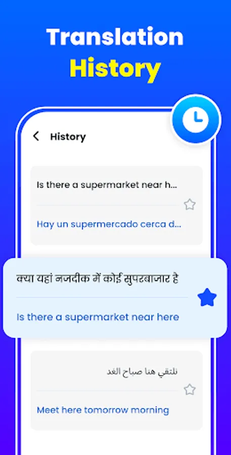 Easily create your own translation collection by starring important translated texts with this translator app. Helps you have your own language reference set while studying or traveling!