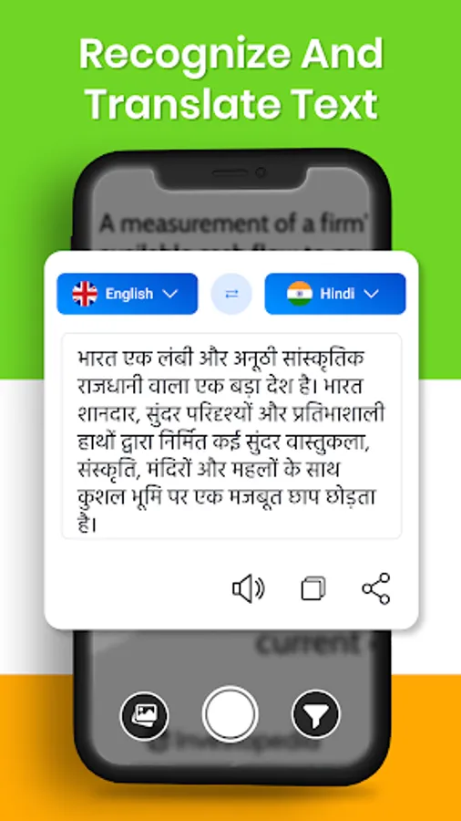This photo translator from Hindi to English Translator app can understand over 100 languages from various regions in the world remind of Google Translate.This means you can speak or translate text English to Hindi, or any other language in the world easily. The highlight of our application is that it can translate from any source: PDF, photo, voice⊠And of course, all completely free!