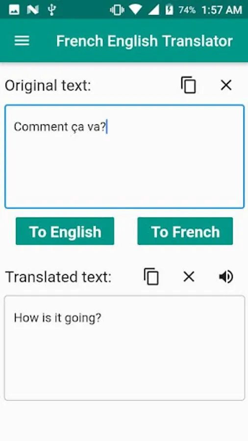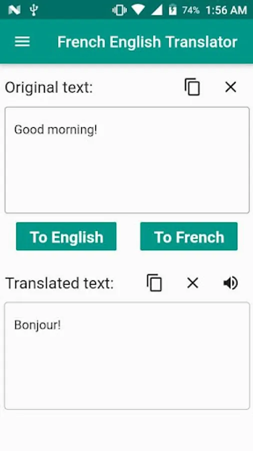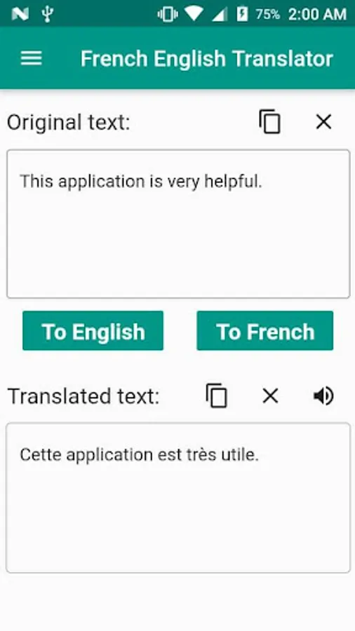 This FREE app translates any words or text form French to English or from English to French.