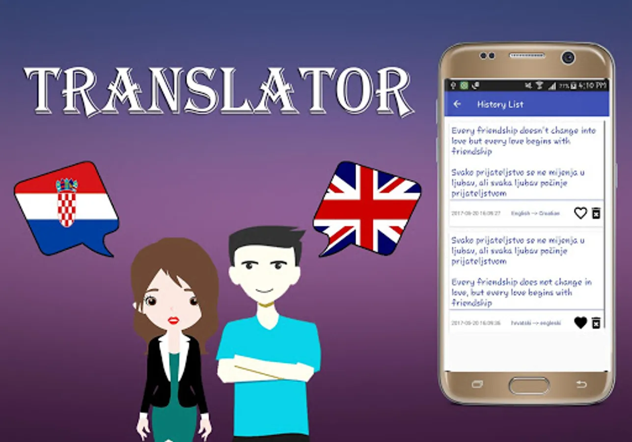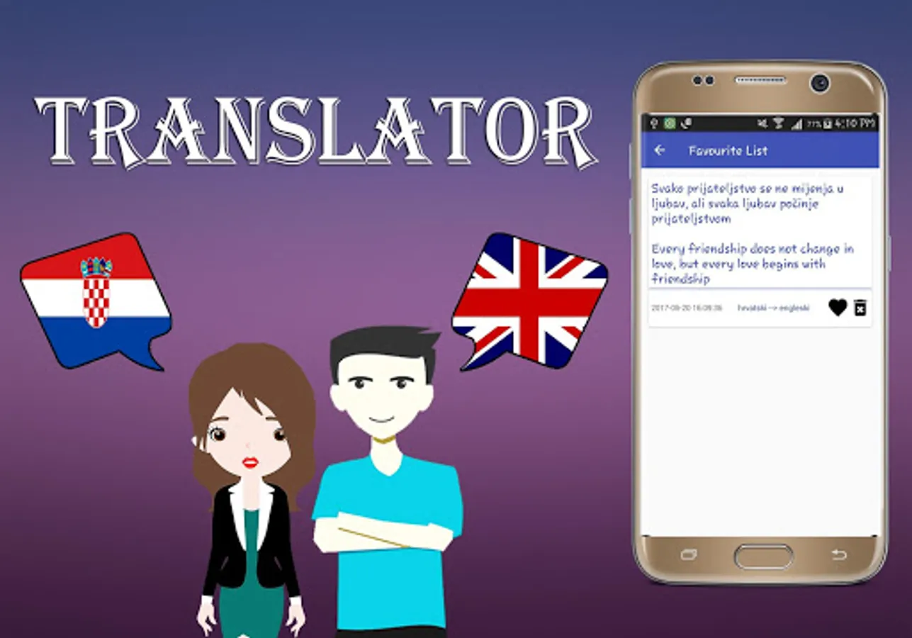 * Croatian To English Translator And English To Croatian Translation is the most powerful translation tool on your android. translate any sentence or phrase into any destination language, and enjoy a set of useful add-on features such as text-to-speech, and integrated social media support.