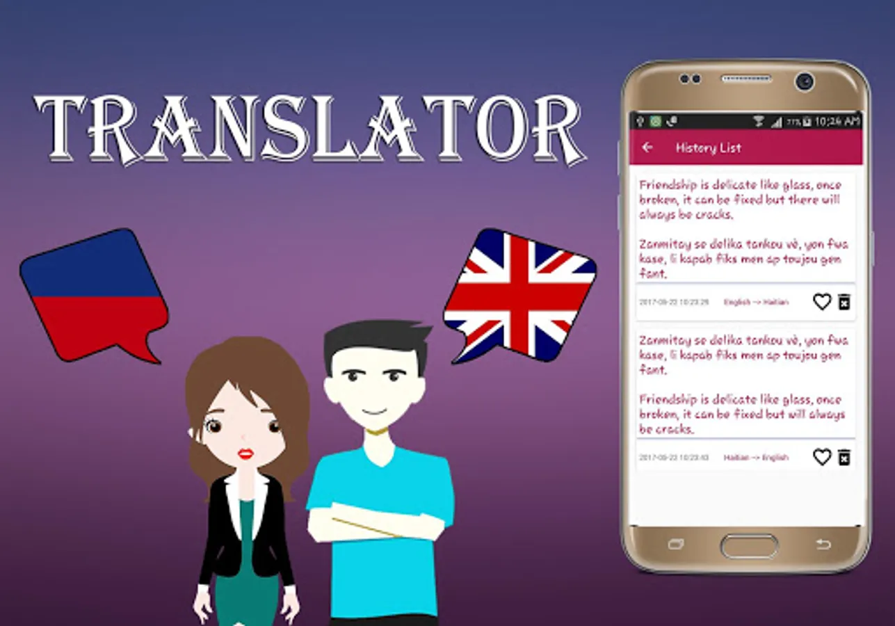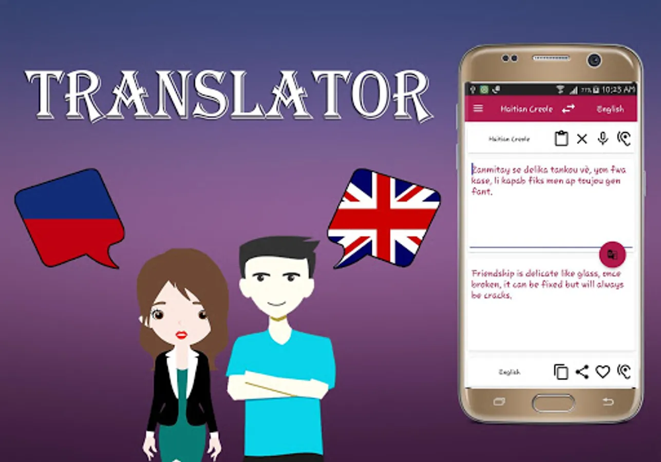 * Haitian Creole To English Translator And English To Haitian Creole Translation is a must have app for any traveler around the world. you will have access to the best languages packs and voice recognition in the world within your device that you can carry anywhere you go. this language app is designed for many purposes in mind including: everyday conversation, traffic signs, maps, local news, business languages, academic papers, and so on. with just a few taps on your device you will be able to understand most written and spoken words in the language you are not familiar with. it will greatly assist you in communicating with the locals.