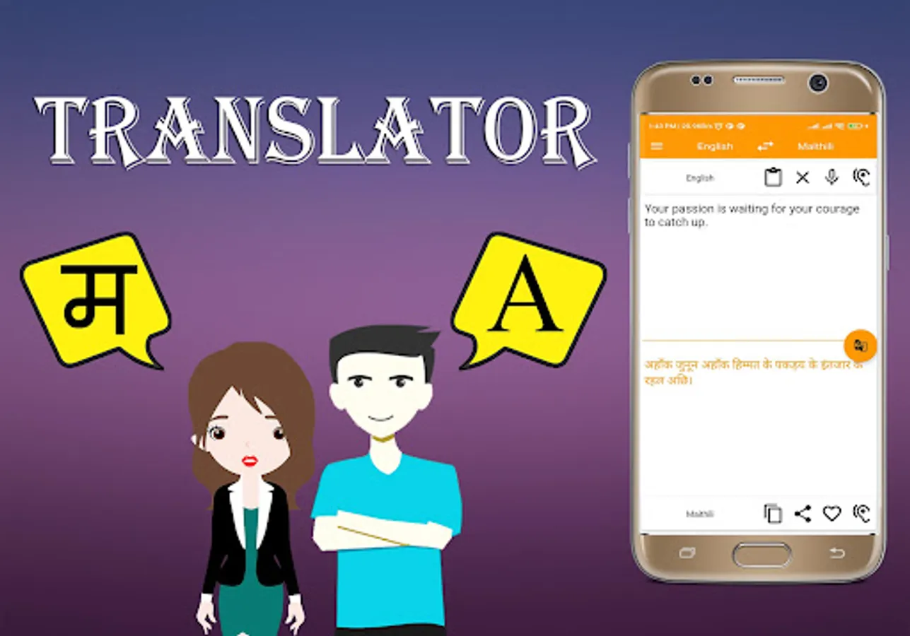 * Maithili To English Translator And English To Maithili Translation is the most powerful translation tool on your android. translate any sentence or phrase into any destination language, and enjoy a set of useful add-on features such as text-to-speech, and integrated social media support.