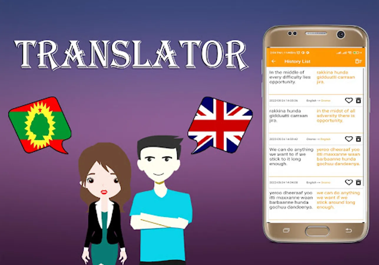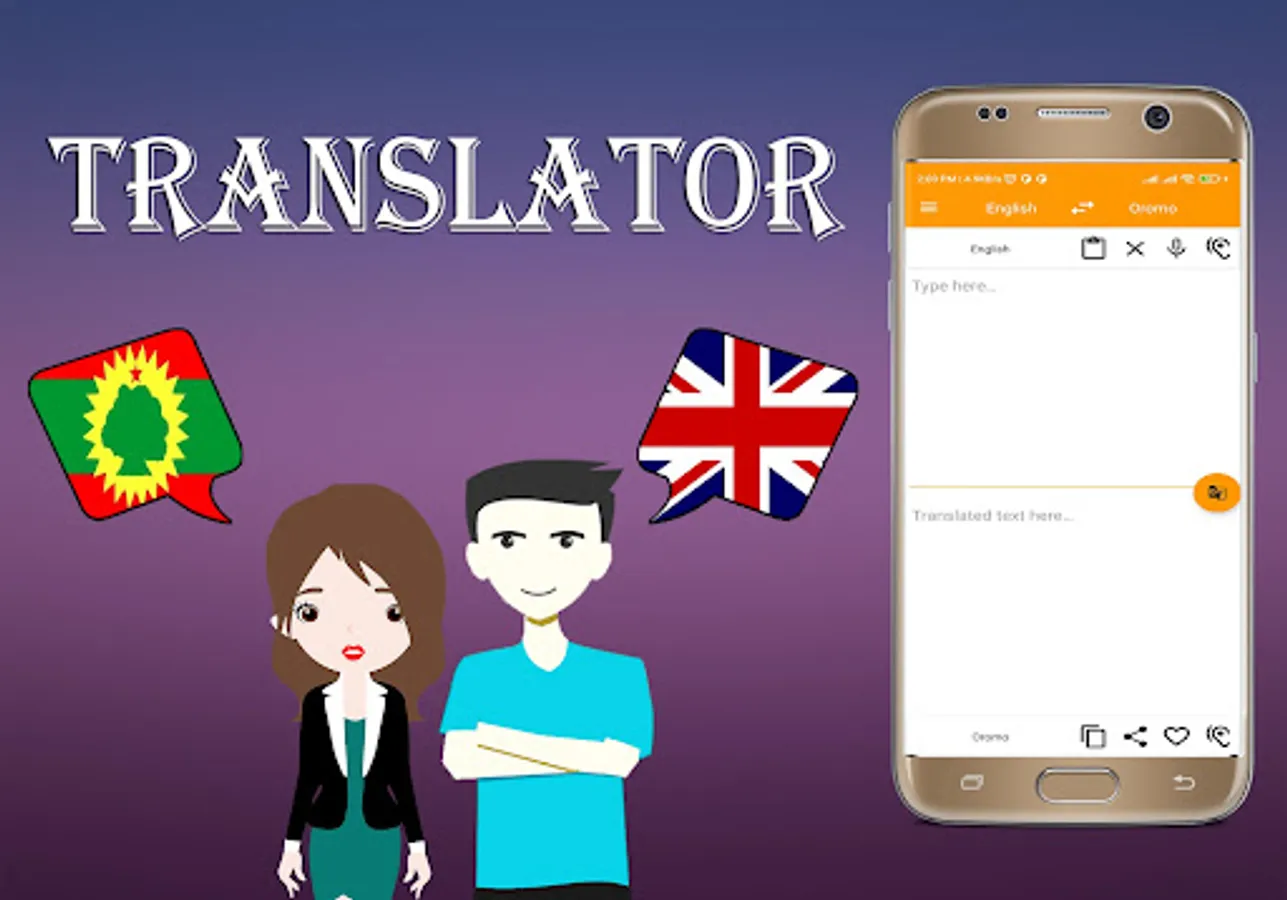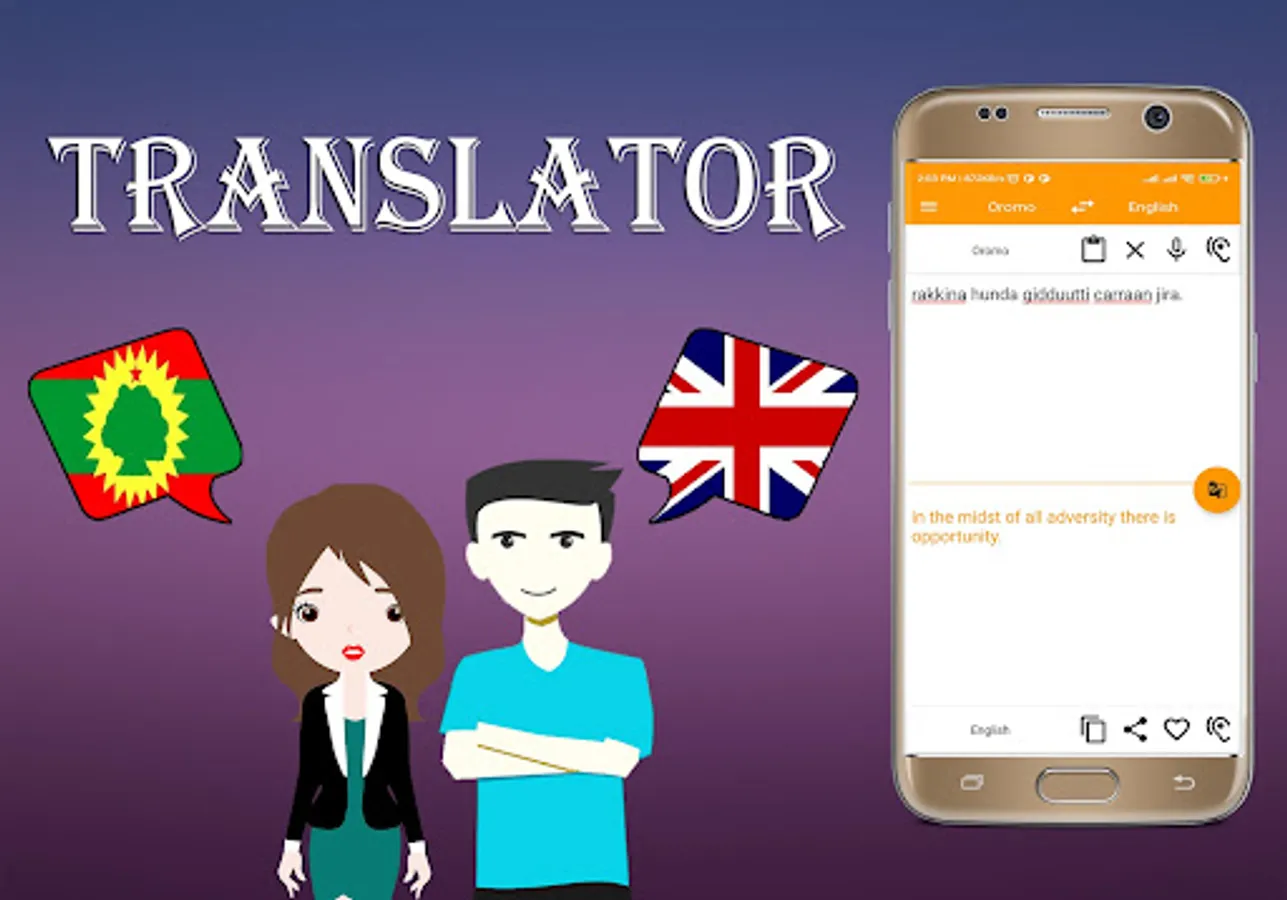 * Oromo To English Translator And English To Oromo Translation is the most powerful translation tool on your android. translate any sentence or phrase into any destination language, and enjoy a set of useful add-on features such as text-to-speech, and integrated social media support.