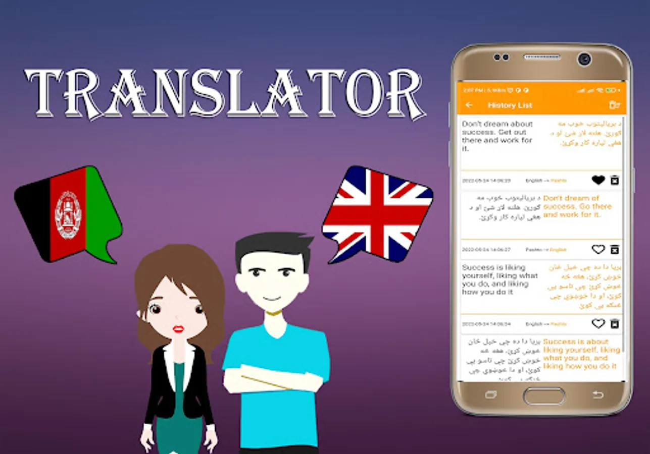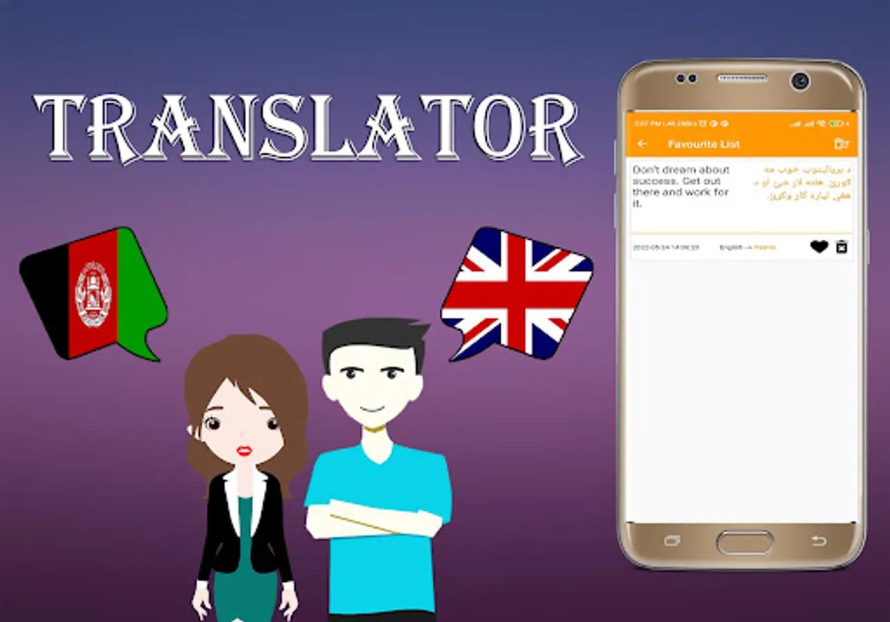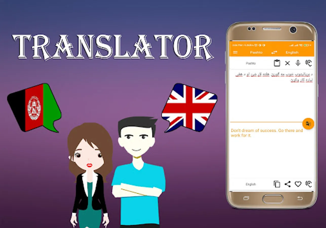 * Pashto To English Translator And English To Pashto Translation is the most powerful translation tool on your android. translate any sentence or phrase into any destination language, and enjoy a set of useful add-on features such as text-to-speech, and integrated social media support.