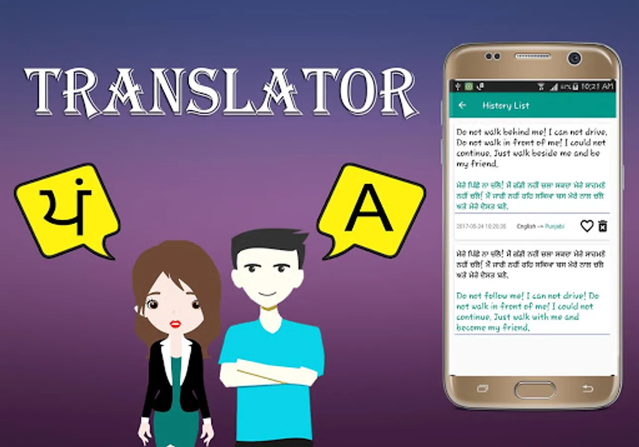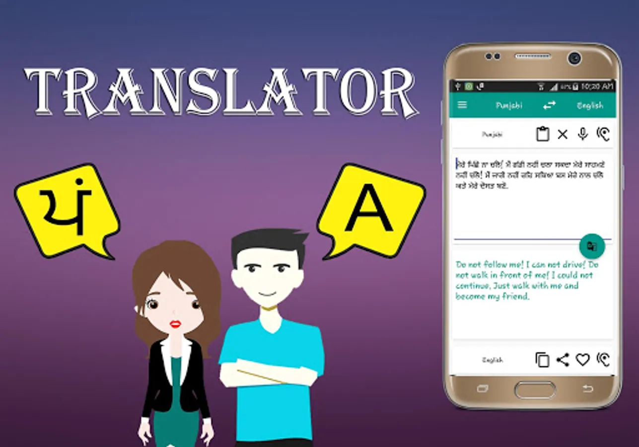 * Punjabi To English Translator And English To Punjabi Translation is the most powerful translation tool on your android. translate any sentence or phrase into any destination language, and enjoy a set of useful add-on features such as text-to-speech, and integrated social media support.