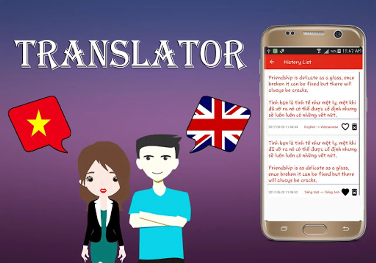 * Vietnamese To English Translator And English To Vietnamese Translation is the most powerful translation tool on your android. translate any sentence or phrase into any destination language, and enjoy a set of useful add-on features such as text-to-speech, and integrated social media support.