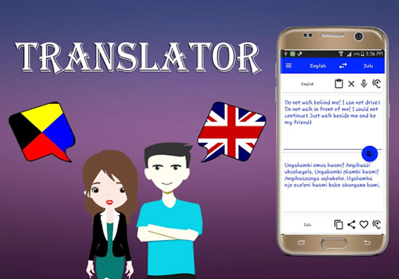 * Zulu To English Translator And English To Zulu Translation is the most powerful translation tool on your android. translate any sentence or phrase into any destination language, and enjoy a set of useful add-on features such as text-to-speech, and integrated social media support.