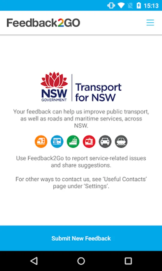Feedback2Go allows customers travelling on NSW public transport, roads and waterways a quick and simple method to provide service-related feedback using their mobile device. It’s free and easy to use and quicker than calling and waiting to speak to an operator.