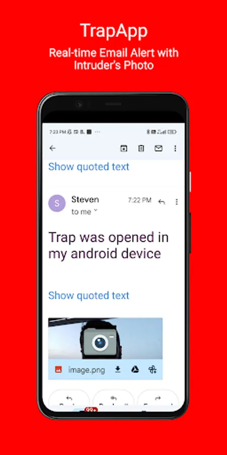 When the trapped app is opened, TrapApp will send an alert to the user's email, containing information such as the IP address, timestamp (when the app was opened), location, and a capture from the front camera. However, the user has the option to customize the settings and choose which information to include in the alert and what action to take when the app is opened.