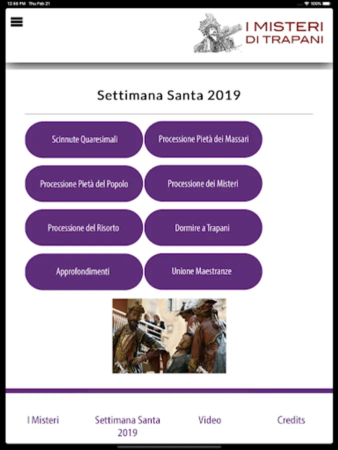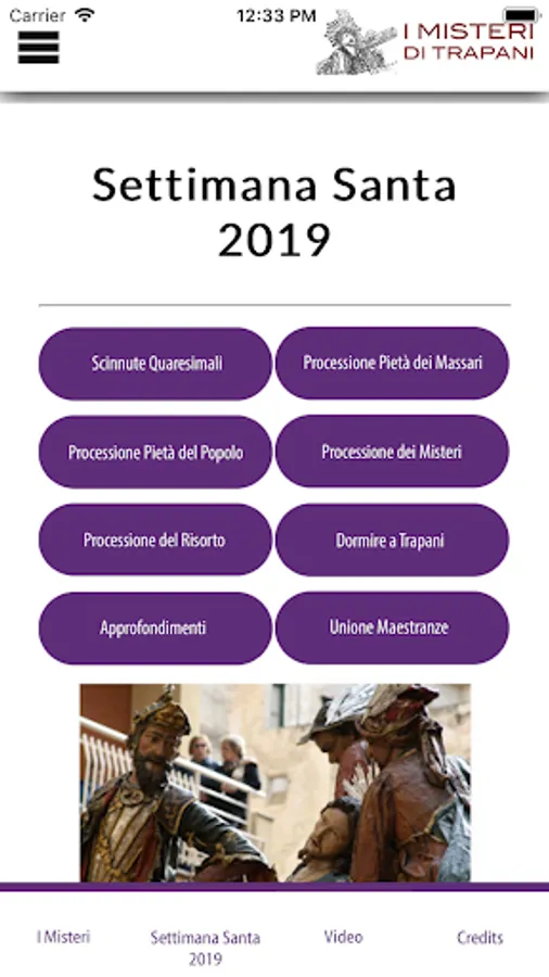 ALSO FOR ANDROID iMisteri - The first free app on the Procession of the Mysteries of Trapani, the most beautiful and most characteristic Good Friday procession in Italy. Eighteen Sacred Groups and two simulacra that travel for twenty-four hours, the streets of the Sicilian city, a seaside city, where traditions live rooted in most of the citizens. This app, in addition to being descriptive, also provides the route 2019 of the procession and the calendar of Lenten appointments, plus a collection of external videos on the procession and various insights.