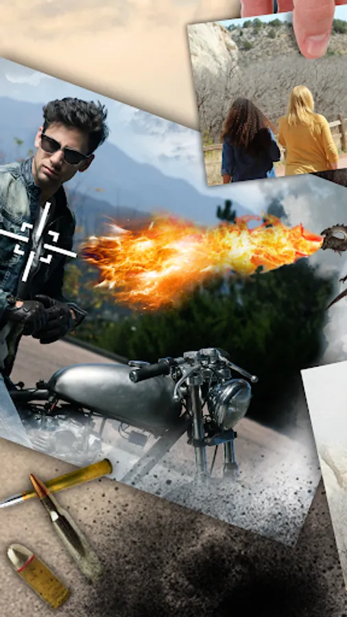 Become a superhero with special superpowers or a movie star in an action movie with this 🔥 Special Visual Movie Effects for Photos 💥. Change background on pictures with this movie fx photo editor and make it look like a scene from a movie. Modify your ordinary and everyday photos with the help of these vfx studio movie effects and revive a famous movie scene or even a documentary scene. Use this movie maker with special effects and edit your boring pics and make them unrecognizable. Add some movie poster photo frame and choose among various special movie effects and stickers such as fire picture effects, explosion effects, nuclear explosion fx, thunder photo effect and many other movie fx photo effects, realistic photo stickers and superpower effects. Choose your weapon or a superpower from this weapon photo editor. Do you want to produce electricity, blow fire or be a soldier and have a gun, rifle, knife or a hand grenade? Recreate your favorite action movie scene and create the best photo montages with this Hollywood movie style photo editor!