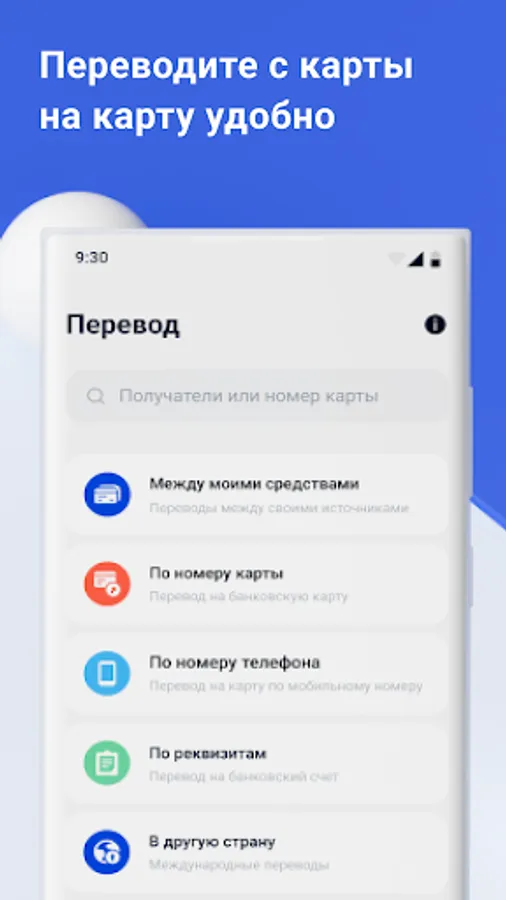 Instant transfers from card to card, flexible deposits, online microloan, currency conversion, payments and cashback up to 2% in one application.