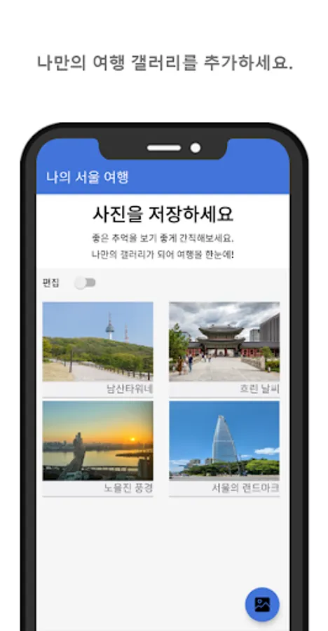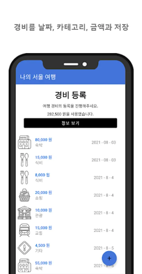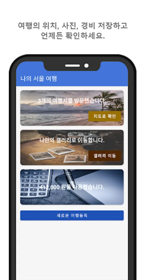 Save the user's travel information as photos (gallery), location (map), expenses, etc. to save memories on your smartphone.