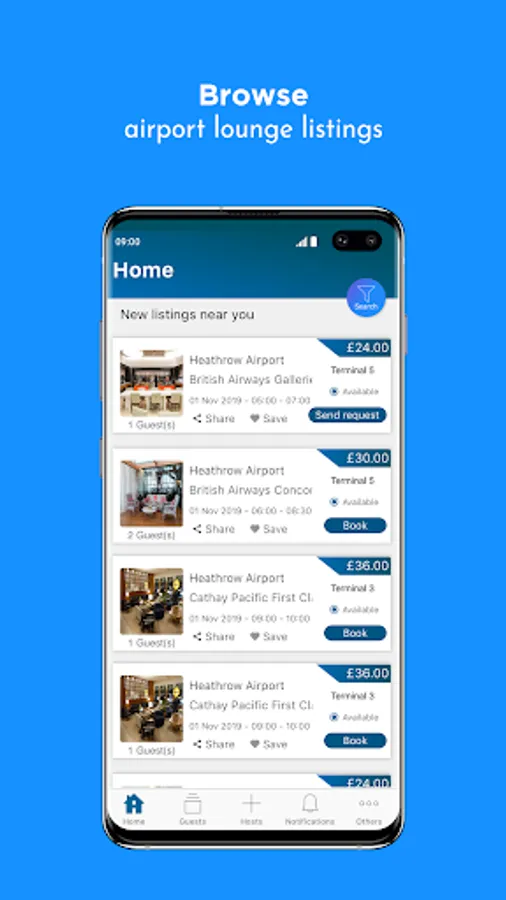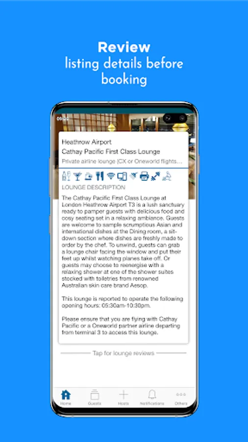 Browse and book affordable airport lounge listings, or create your own listings and earn a fee