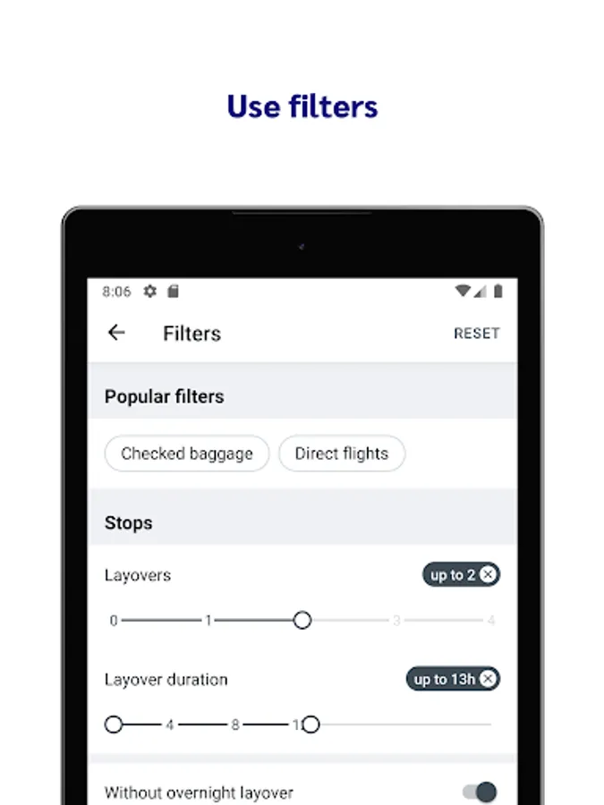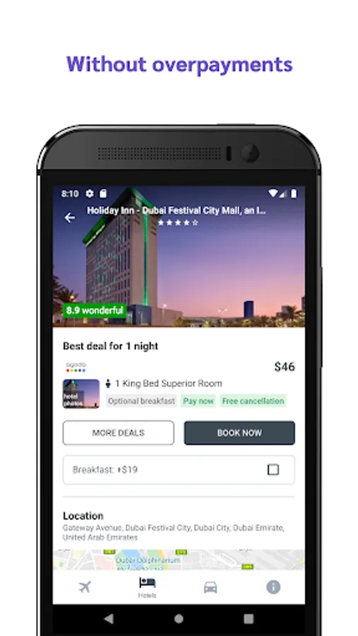 Save up to 40% with the smart app for finding cheap flights and hotels! Any directions and airlines, filters and currency selection, recommendations for quick flights!