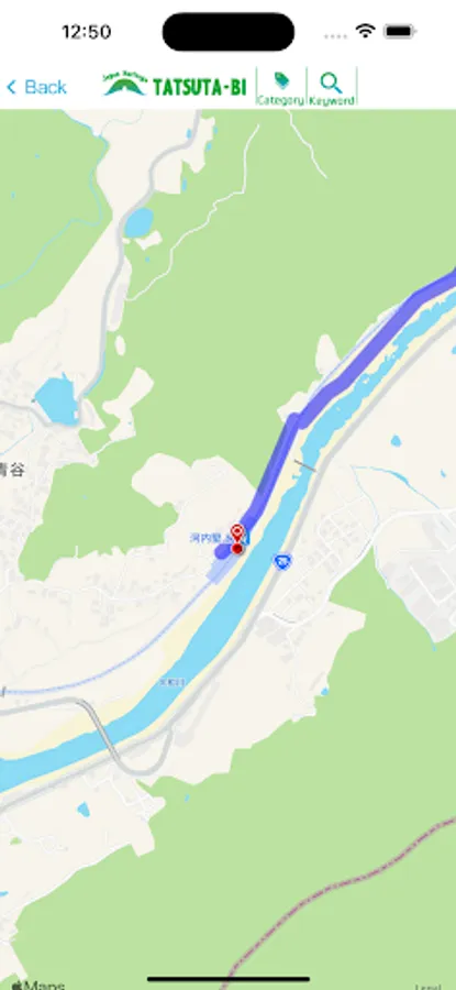 ● Helps you navigate the walking course around the Japanese heritage "Tatsuta Kodo Kamenose" using GPS.